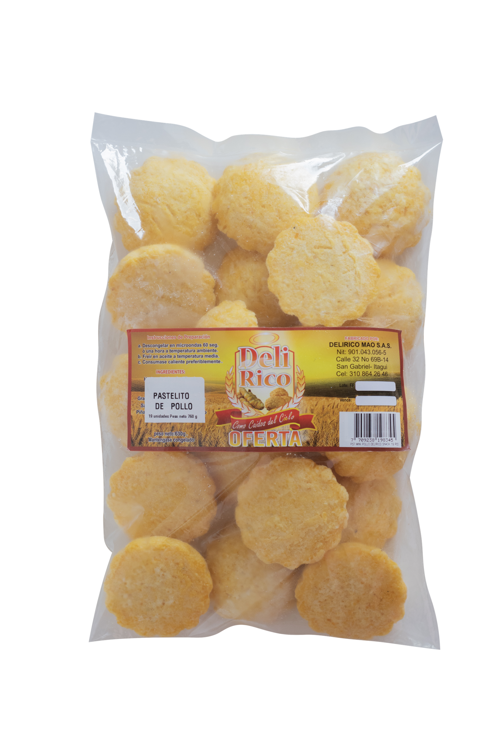 Pasteles cóctel de pollo. Presentación de 19 unidades.